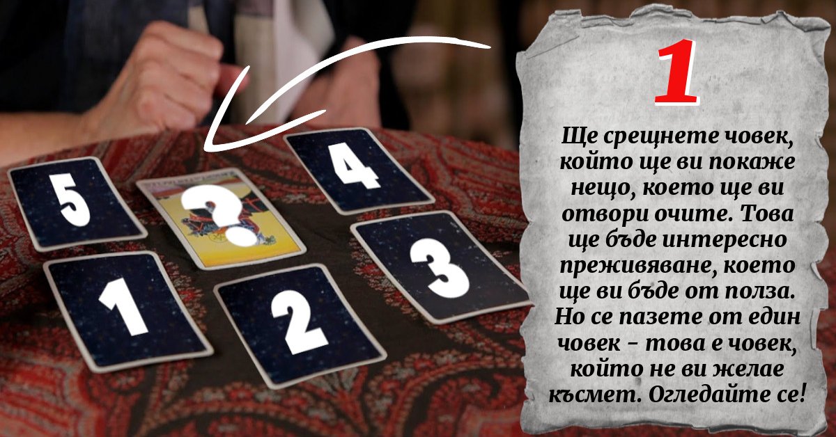 Ще срещнете човек, който ще ви покаже нещо, което ще ви отвори очите. Това ще бъде интересно преживяване, което ще ви бъде от полза. Но се пазете от един човек - това е човек, който не ви желае късмет. Огледайте се!