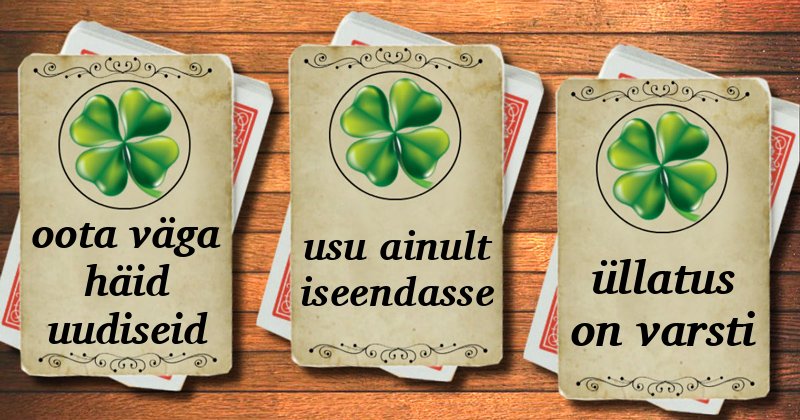 Ennustaja Miriam valmistas ette tarot-õnnekaardid. Kas teil on väga vedanud või võib-olla ei õnnestu?
