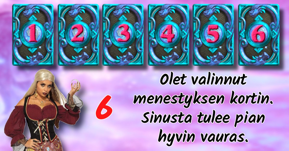 Olet valinnut menestyksen kortin. Sinusta tulee pian hyvin vauras.