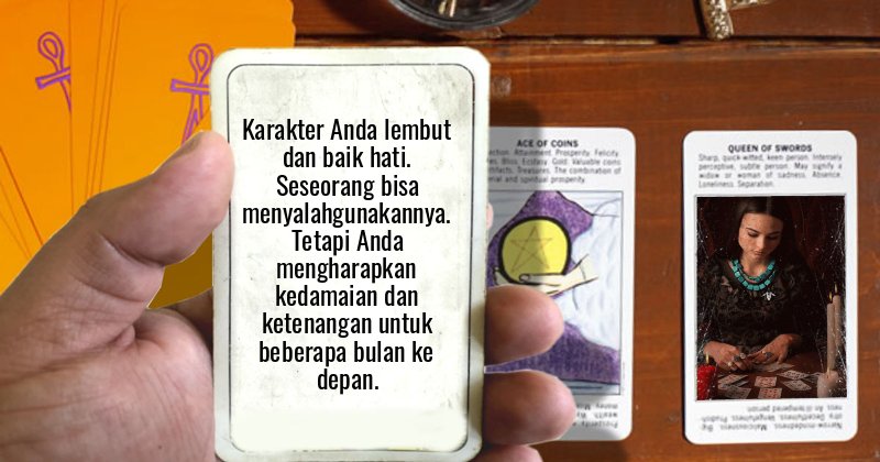 Peramal Miriam menyiapkan kartu keberuntungan tarot. Apakah Anda akan sangat beruntung atau mungkin tidak beruntung?