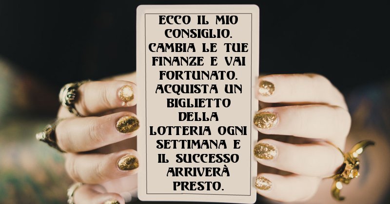 Questa carta può cambiare la vostra vita. Cosa vi dice?