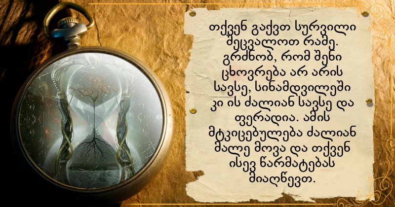 კიდევ რას მოგიტანს შენი ცხოვრება? შეხედე ბედის საათს.