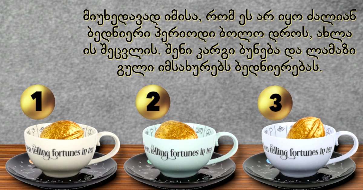 თითოეული ჭიქა არის ერთი ოქროს კაკალი და თქვენ სარგებლობენ მხოლოდ ერთი მათგანი ყურადღებით!