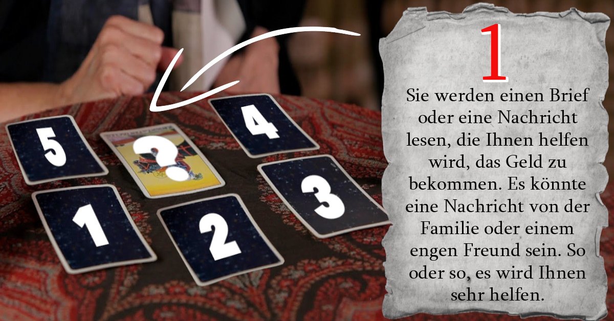 Sie werden einen Brief oder eine Nachricht lesen, die Ihnen helfen wird, das Geld zu bekommen. Es könnte eine Nachricht von der Familie oder einem engen Freund sein. So oder so, es wird Ihnen sehr helfen.