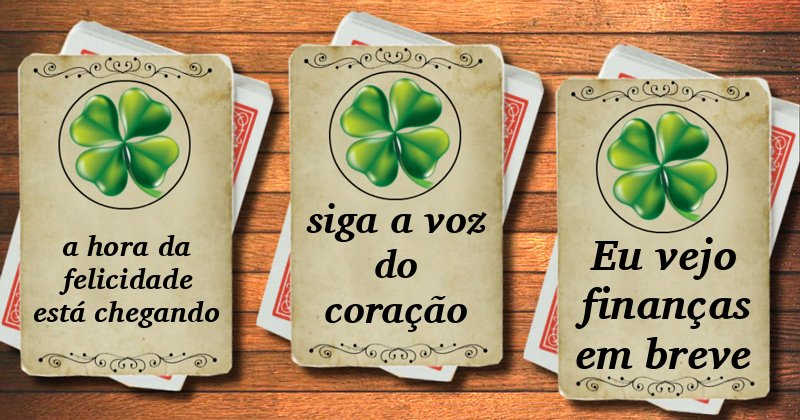 Qual das 3 cartas você vai escolher? Vai mostrar-lhe se vai ter sorte ou não.