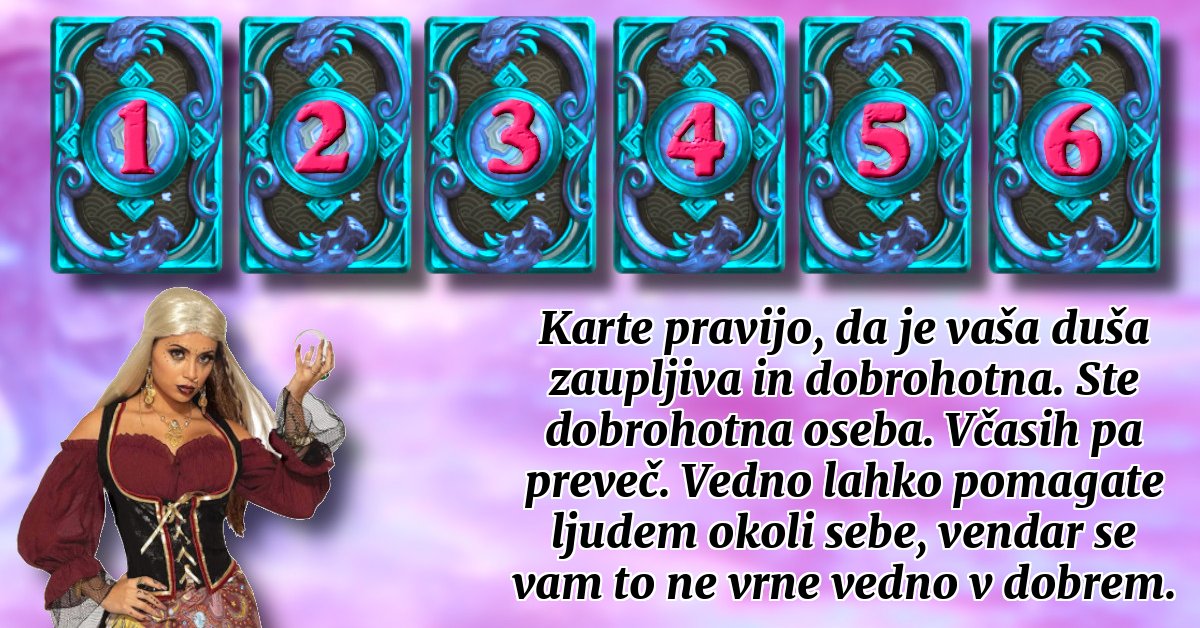 Vedeževalec bo samo za vas iz kompleta izžrebal karto, ki bo veliko povedala o vaši prihodnji usodi.