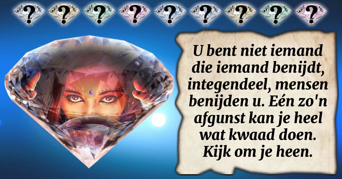 U bent niet iemand die iemand benijdt, integendeel, mensen benijden u. Eén zo'n afgunst kan je heel wat kwaad doen. Kijk om je heen.