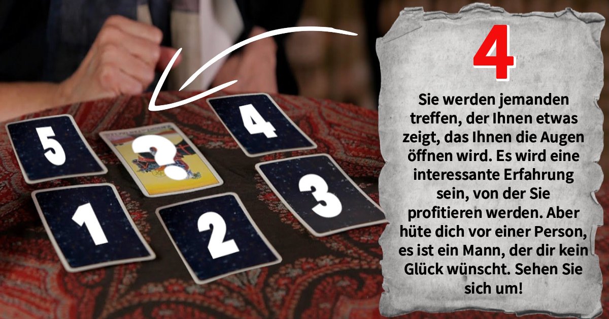 Sie werden jemanden treffen, der Ihnen etwas zeigt, das Ihnen die Augen öffnen wird. Es wird eine interessante Erfahrung sein, von der Sie profitieren werden. Aber hüte dich vor einer Person, es ist ein Mann, der dir kein Glück wünscht. Sehen Sie sich um!
